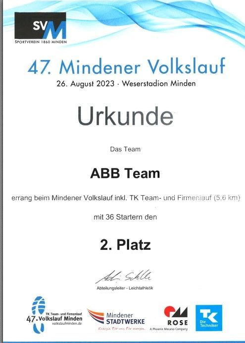 We at ABB, with 36 participants, came second out of 25 teams in the “largest team” category, behind Wago and ahead of Minda. Each of you played a part in this.