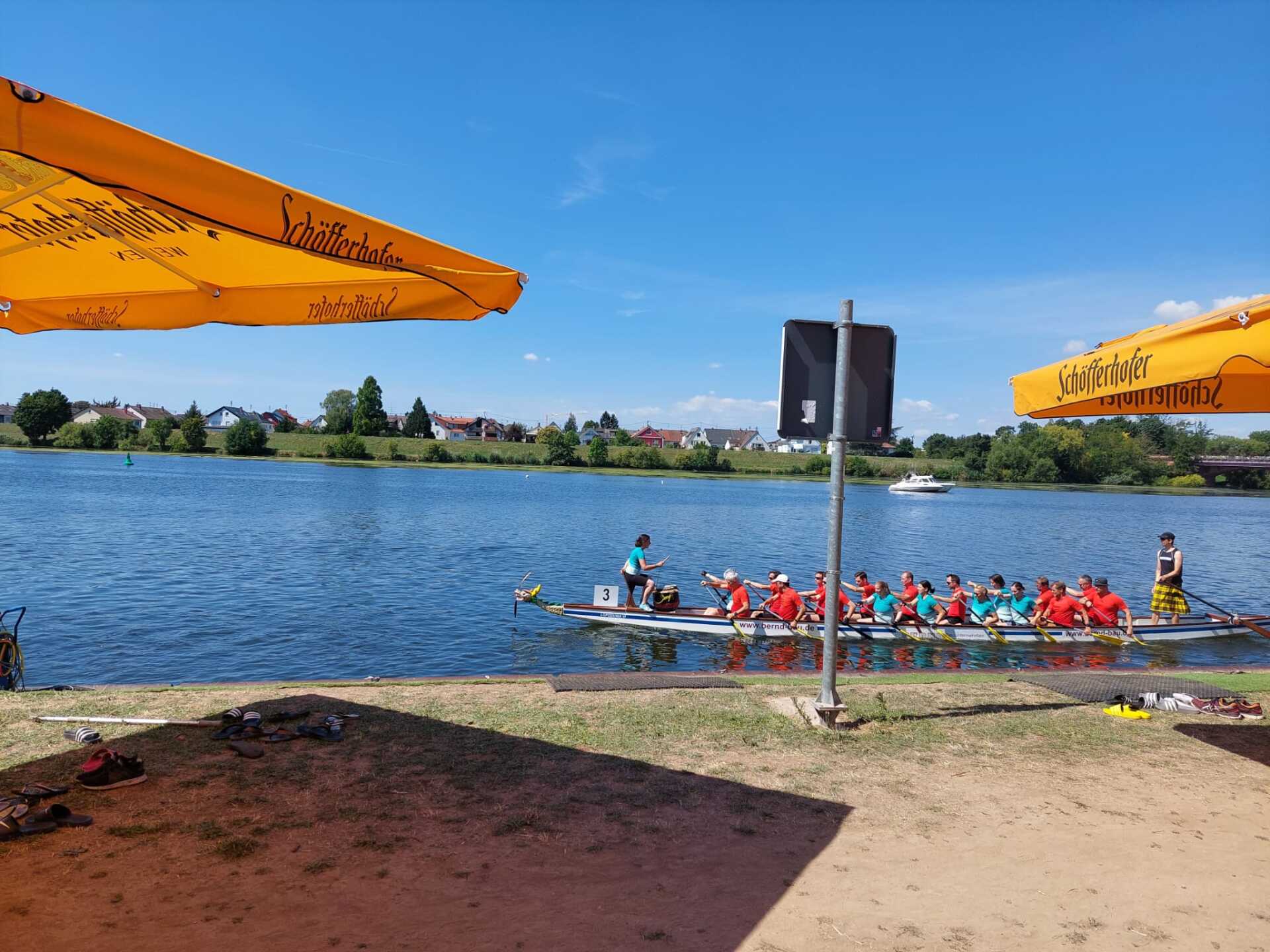 This great feeling was then taken back to Ladenburg two weeks later. And the atmosphere was great! In the first heat, the fifth fastest time of all dragon boat teams in the mixed category (at least 6 women must paddle in the boat). The great supporting program provided food and drink and a great atmosphere, and so our team managed to finish 5th in both heats. This meant that for the very first time, our DracHEnknABBen did not have to take part in a qualifying heat on Sunday in order to make it to the quarter-finals.